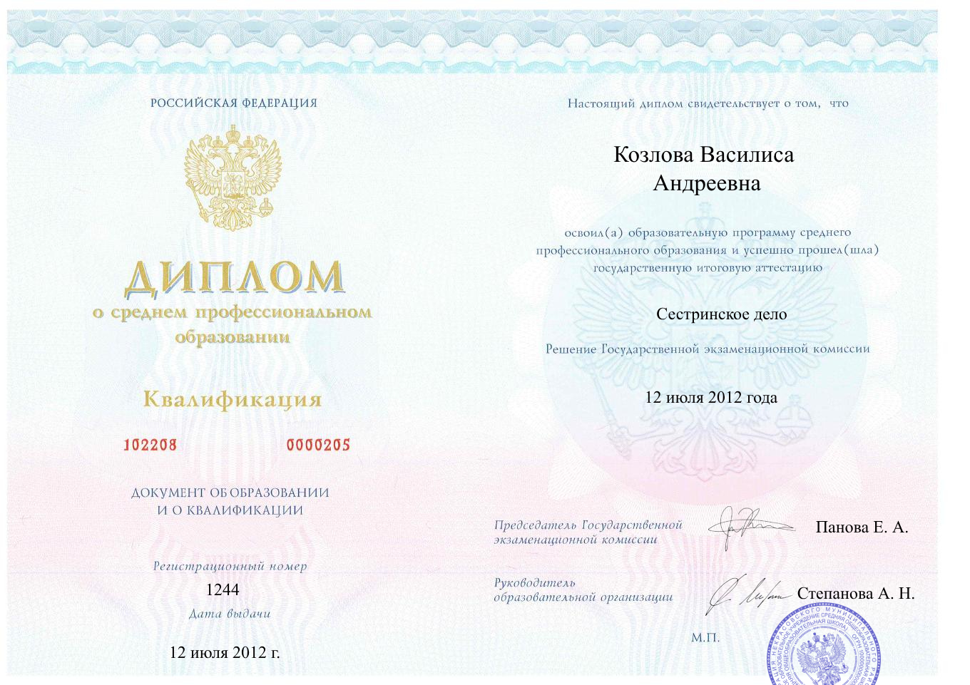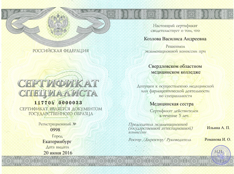 Специализация: Медицинская сестра